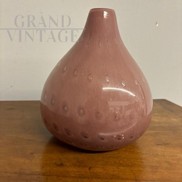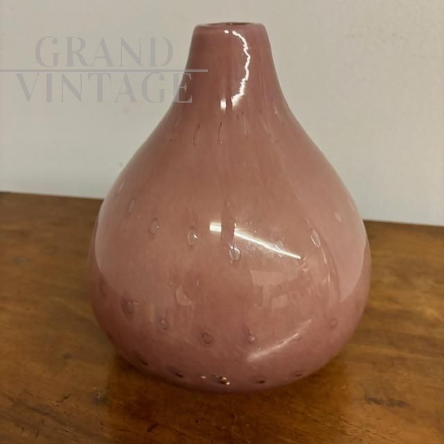 Vaso vintage in vetro di Murano rosa con bolle in sospensione, della metà del XX secolo. In pefetto stato.