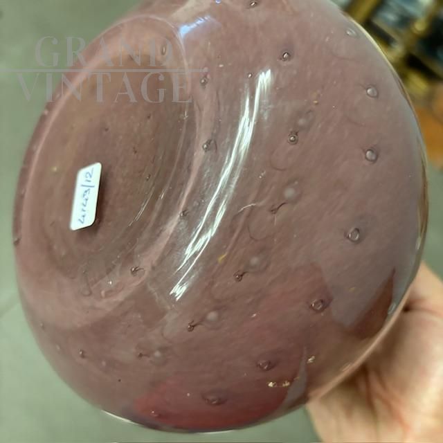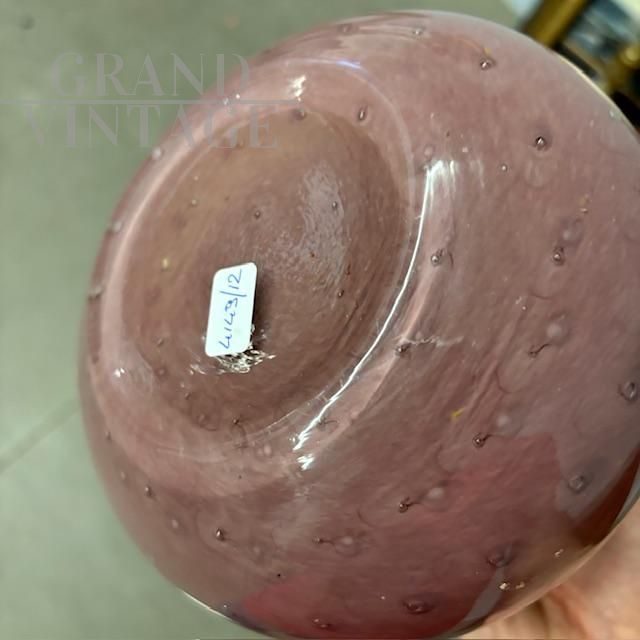 Vaso vintage in vetro di Murano rosa con bolle, metà XX secolo