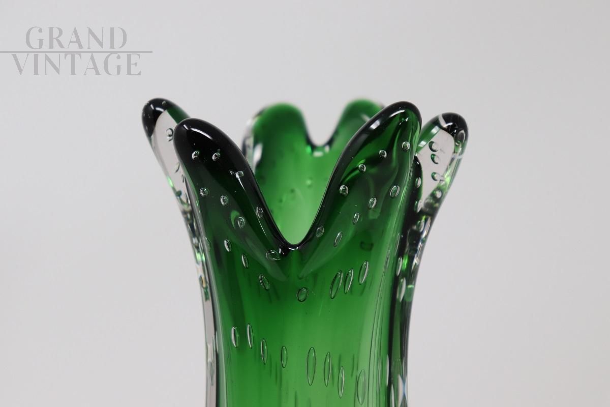 Vaso vintage in vetro di Murano verde con bollicine, anni '60