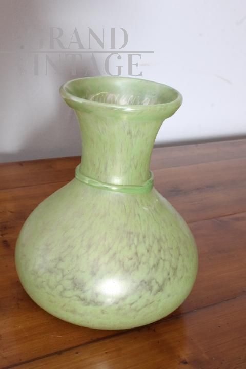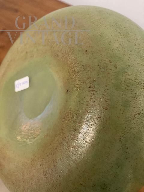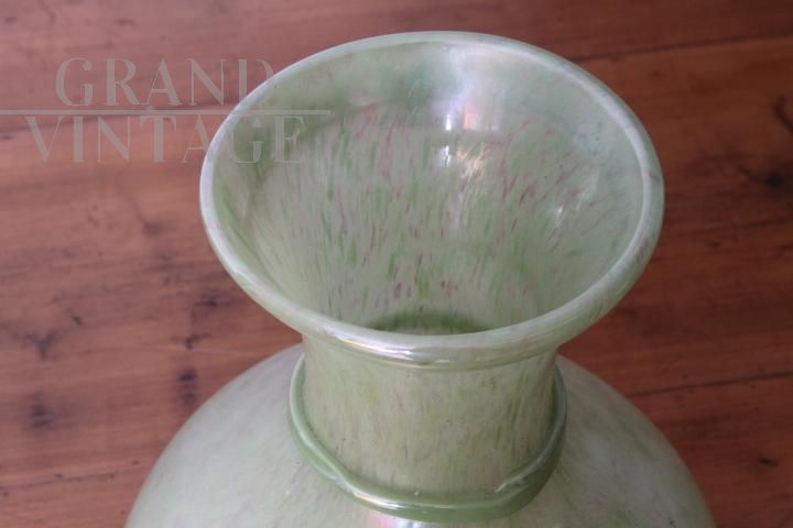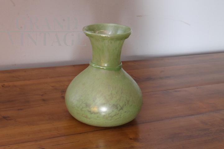 Vaso vintage in vetro di Murano verde con riflessi a lustro