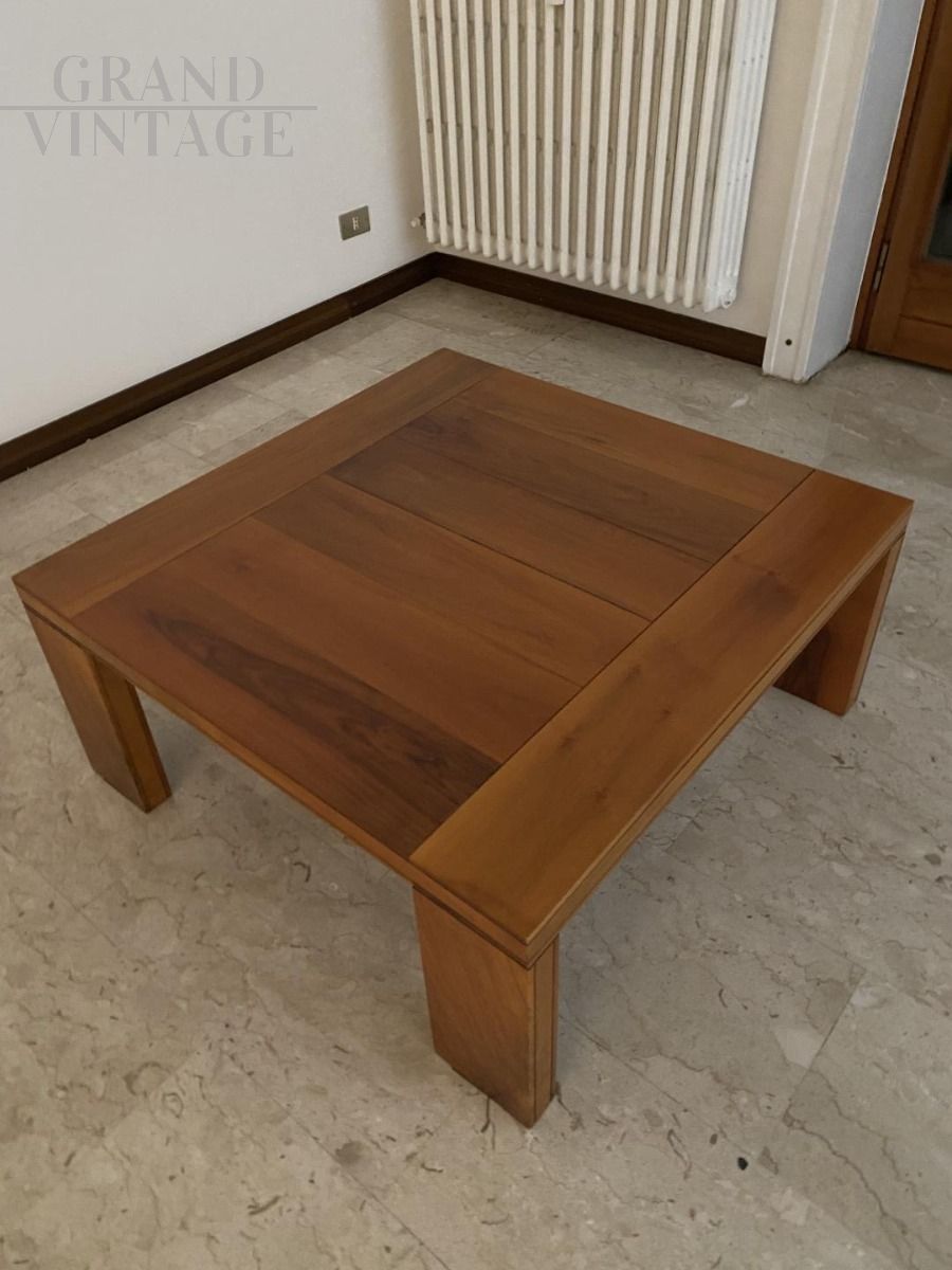 Tavolino da soggiorno vintage italiano con piano quadrato, realizzato in noce nazionale su disegno di Architetto.